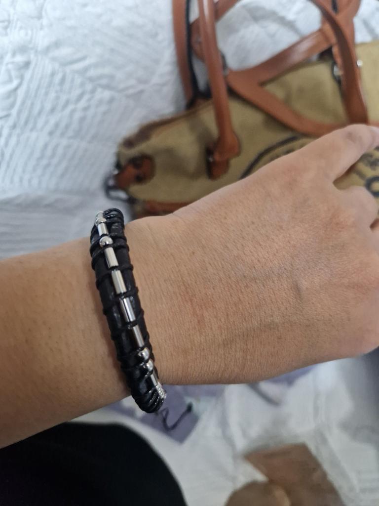 Men's Trendy Cowhide & Morse Code Bracelet with Stainless Steel Beads