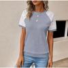 Women's Summer T-shirt Jacquard Knit Hollow Lace Splicing Loose Short-sleeved Tops