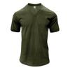 Men's Fashion V-Neck Knitted Shirt Solid Color Short Sleeved Textured T-shirt Pullover