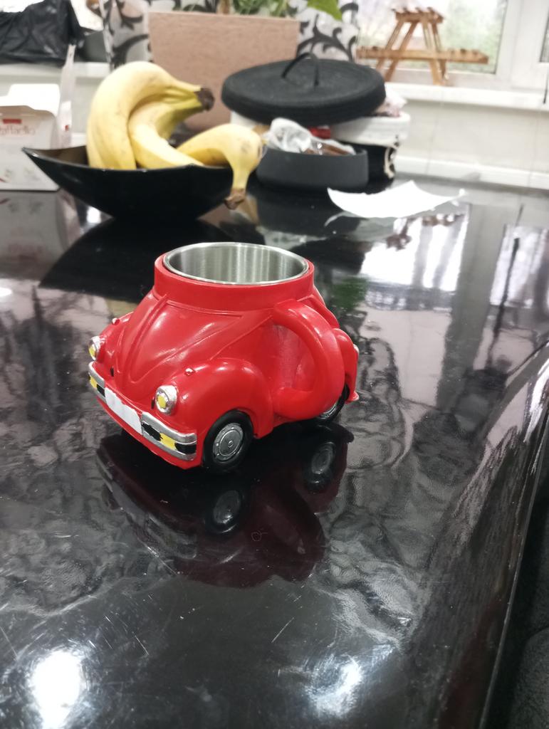 Mug in the shape of a car These mugs fit perfectly into the interior and look interesting. It's not very convenient to drink from it, but it's possible. I use it for treats, in the form of various dragees, nuts, dried fruits. Cool. And it would make a very good gift. I recommend 🤗