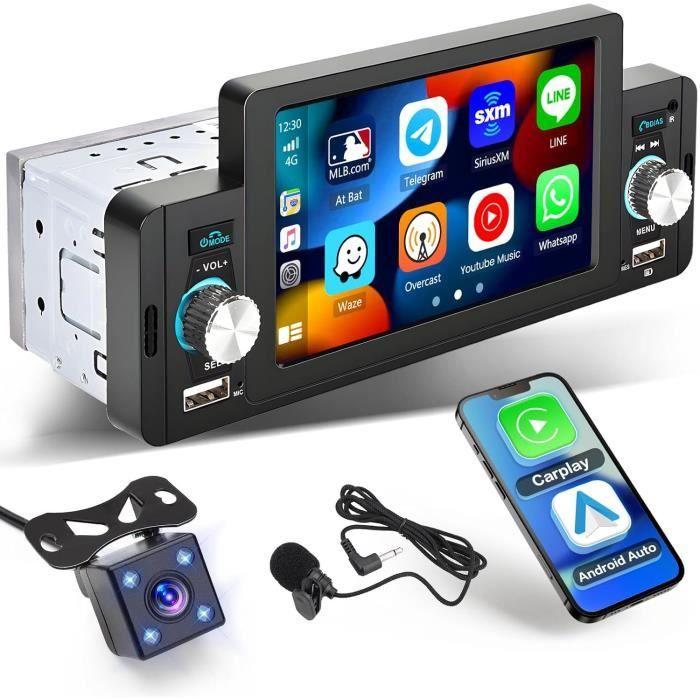 Autoradio 1 din - hikity - carplay android auto - écran tactile 5 pouces - bluetooth - microphone intégré
