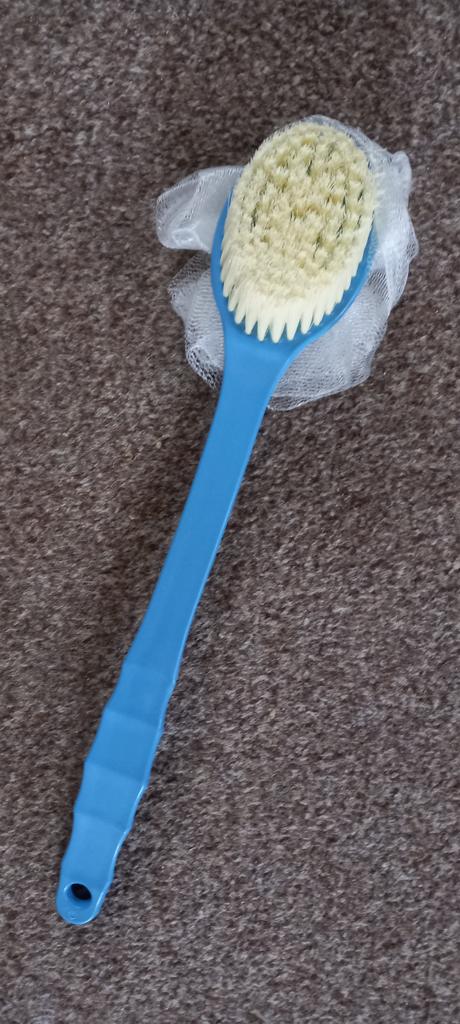 On one side a brush, on the other a very small washcloth, it is impossible to bathe