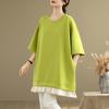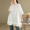 DIMANAF 2025 New Summer Plus Size T-Shirt Women O-Neck Short Sleeve Spliced Cotton Loose Tops Tees Maxi