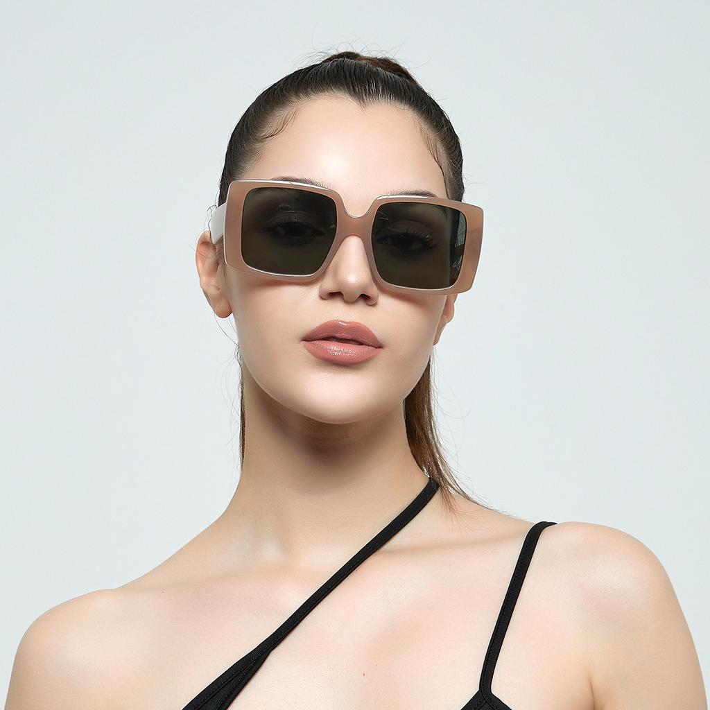 Glasses 95153 Large Frame Square Color Frame Trendy Sunglasses Women, Sunglasses Men