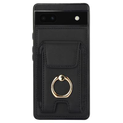For Google Pixel 6a Phone Case PU Leather+TPU Card Holder Cover with Ring Holder