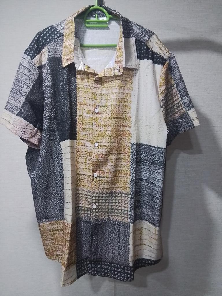 Men's Vintage Geometric Carpet Twill 3D Digital Print Short Sleeve Shirt with Button Pocket Polyester 100% Summer Casual