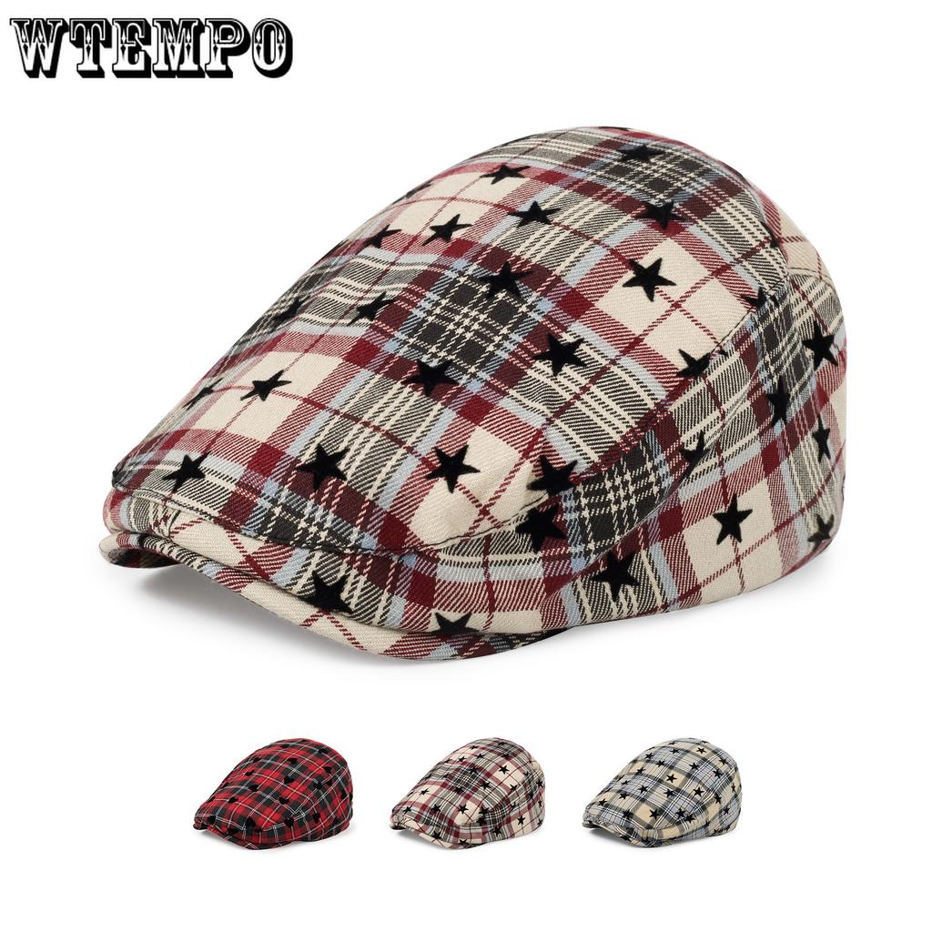 Retro Plaid Star Forward Hat for Women Autumn and Winter British Style Beret Painter's Hat