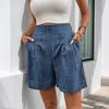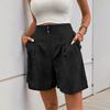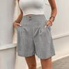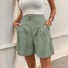 VEZFAA Women's Fashion Casual Solid Color Print High Waist Sport Shorts