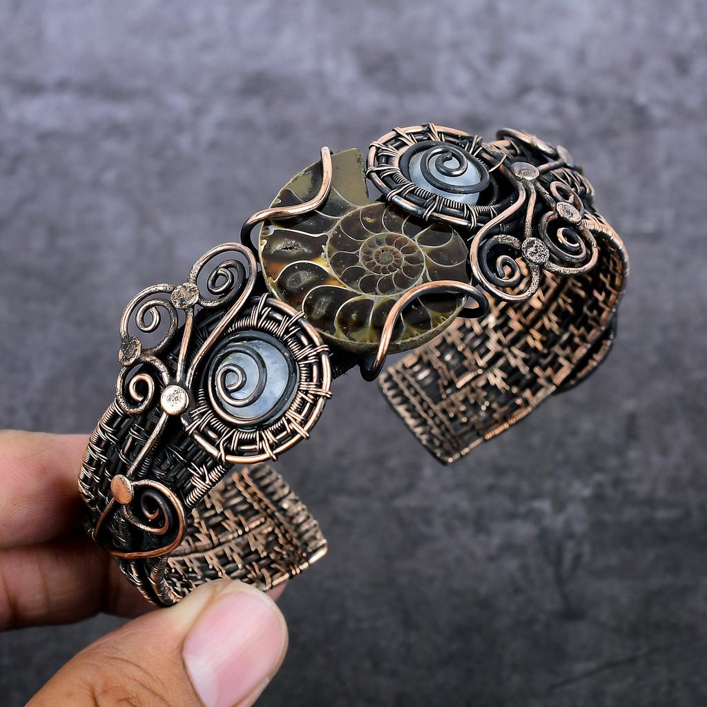 Ammonite Fossil Handmade Copper Wire Wrap Cuff Bangle Adjustable S8n70