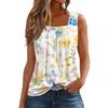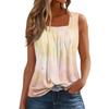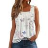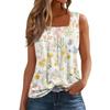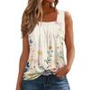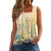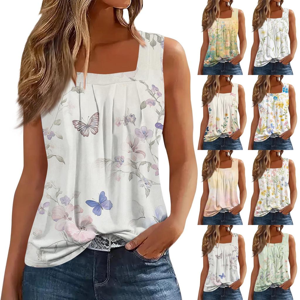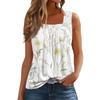 Women's Fashion Casual Pleated Square Collar Sleeveless Vest Print Summer T-shirt