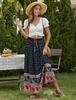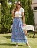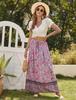 Women's 2025 Bohemian Floral Print Pleated Maxi Dress with Elastic High Waist