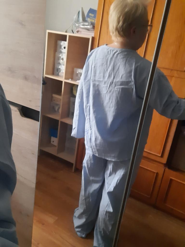 The expectations were not met. The sleeves are long and thin, the trousers are very wide. The material is cotton, suitable only for weeding the garden in summer, in the heat