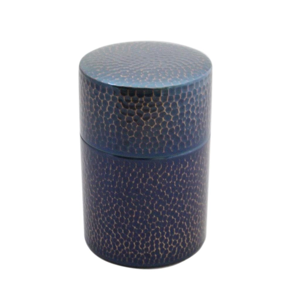 Shinkodo Made In Japan Pure Copper Tea Caddy Blue Covered Hammer Eye Gift Wrapping Specification (Large)