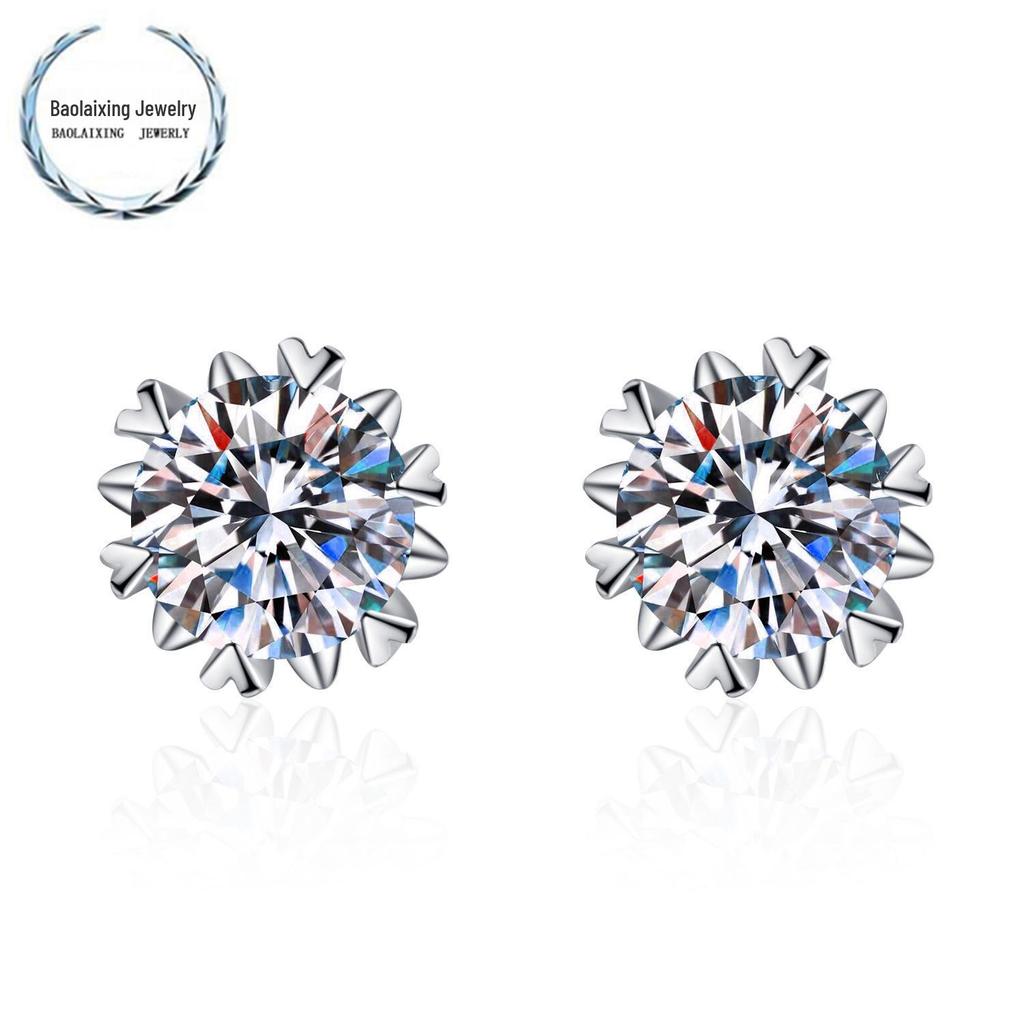 One-Carat Snowflake Diamond Earrings for Valentine's Day Gift