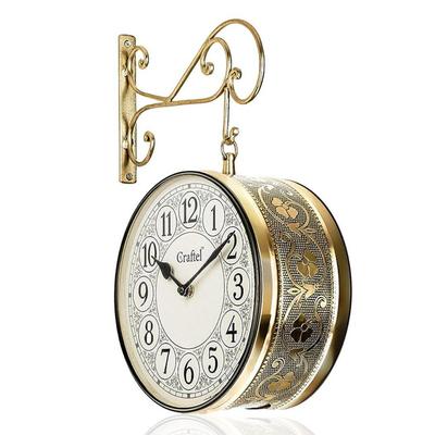 Metal Analog Double Sided Vintage Railway Station Wall Clock Platform Hanging Clock for Living Room Home Office