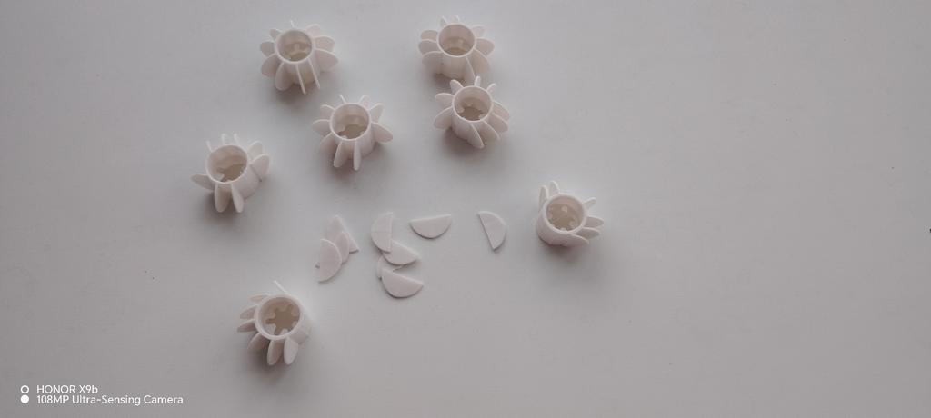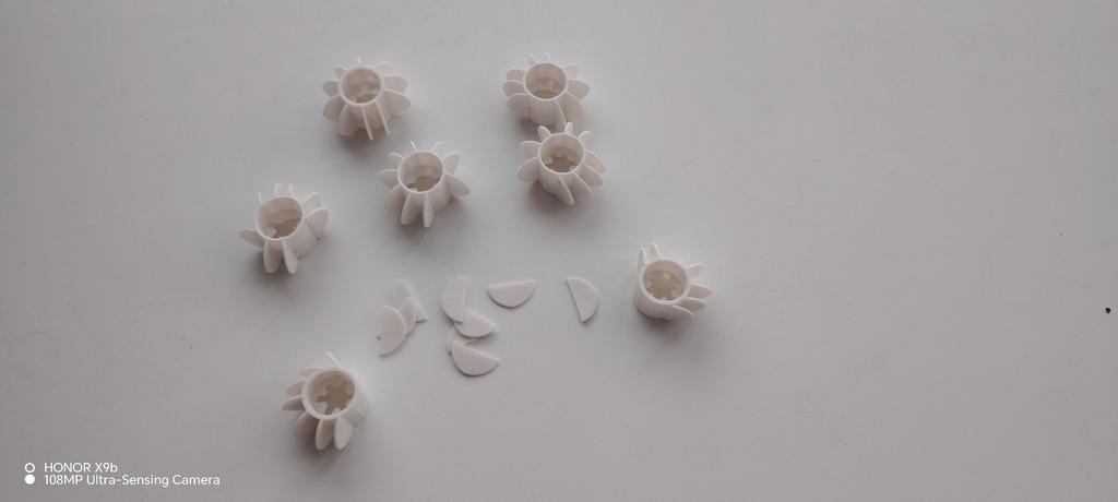 12 tiny balls: 2*4 cm. If they fall under the drum rim, they stay there.