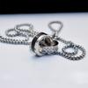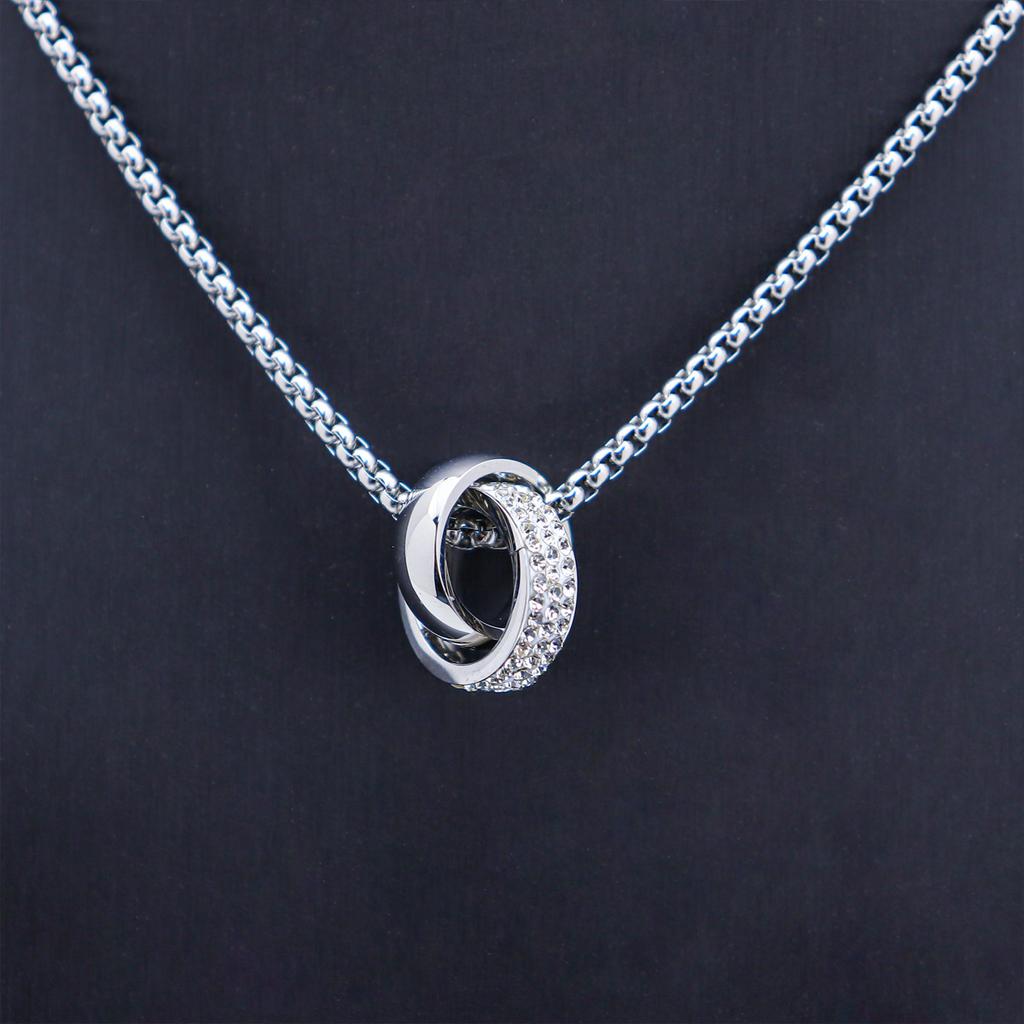 Fashion Trendy Men'S And Women'S Double-Ring Diamond-Encrusted Pendant Necklace High-End Trendy Cool Titanium Steel Pearl Chain Jewelry