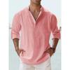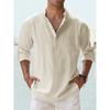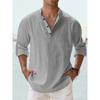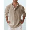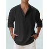 Streetwear Men Lightweight Shirts Long Sleeve Henley Cotton Linen Shirts for Men Beach Hawaiian Shirts Breathable Collar Tshirts