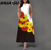 IHUASU 48 Color New Women Loose Vintage Floral Print Ruffle Dress Befree Dress Big Summer Party Tank Tops Elegant Maxi Dresses