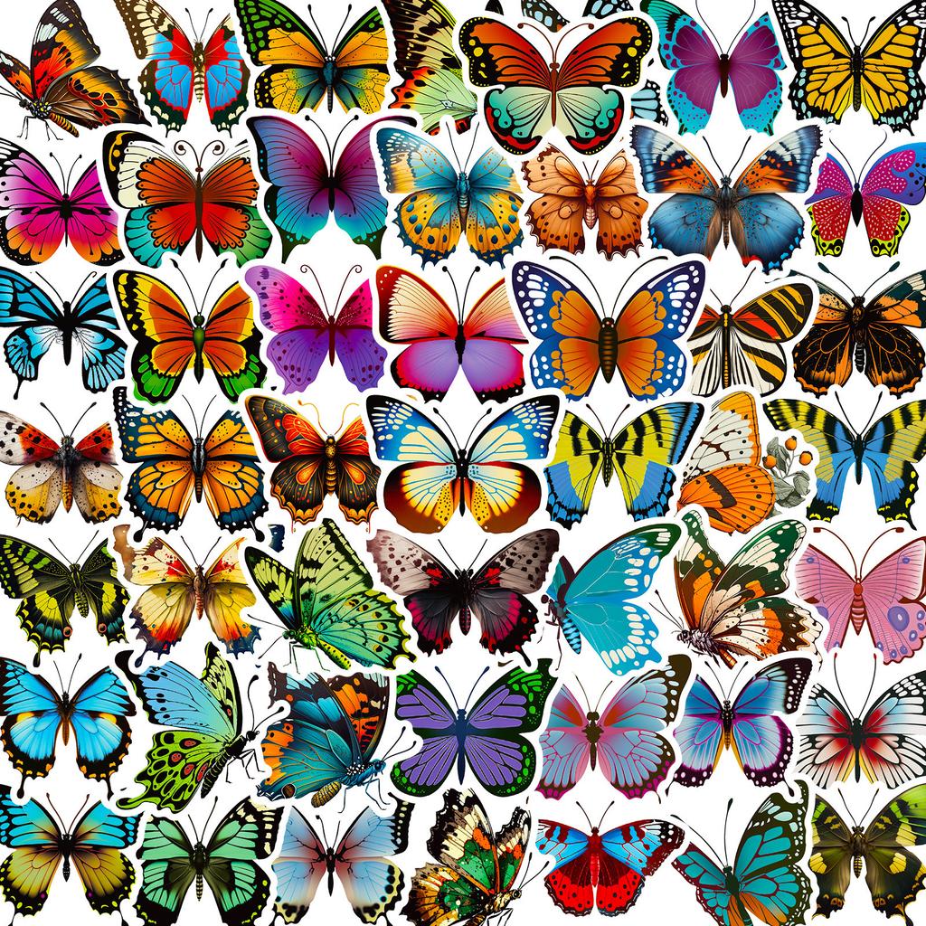 50 Butterfly Stickers Hot Cartoon Colored Flowers Butterfly Graffiti Stickers Notebook Skateboard Water Cup Stickers