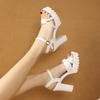 High Heels Sandals, Thick Heel Waterproof Platform, Versatile, Summer, Soft Leather, Pearl, Comfortable, Stylish, Height Increasing Women's Shoes