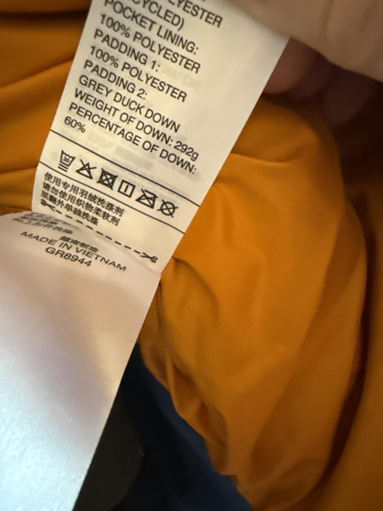 jacket that attracts attention with its pocket, not for super cold winter, filling down feather