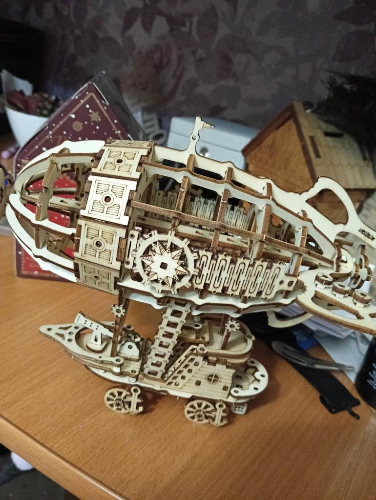 3D Wooden Airship Puzzle Mechanical Model DIY Assembly Creative Gift For Adults Kids Unique 3D Puzzle Toy Mask Collectible