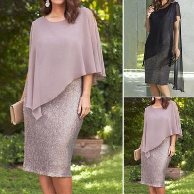 Dress Mesh Stitching Slim-fit Polyester Women Fashion Cape Dress for Banquet