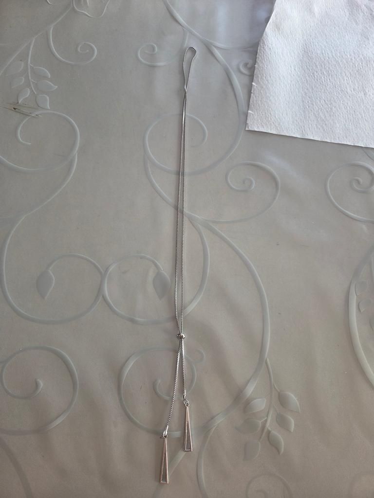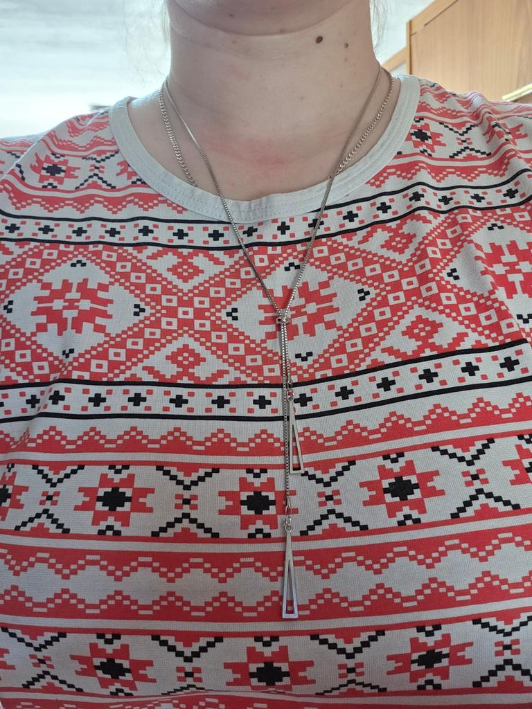 Interesting costume jewelry. No clasp, only a neat fastener, which allows you to adjust the length.