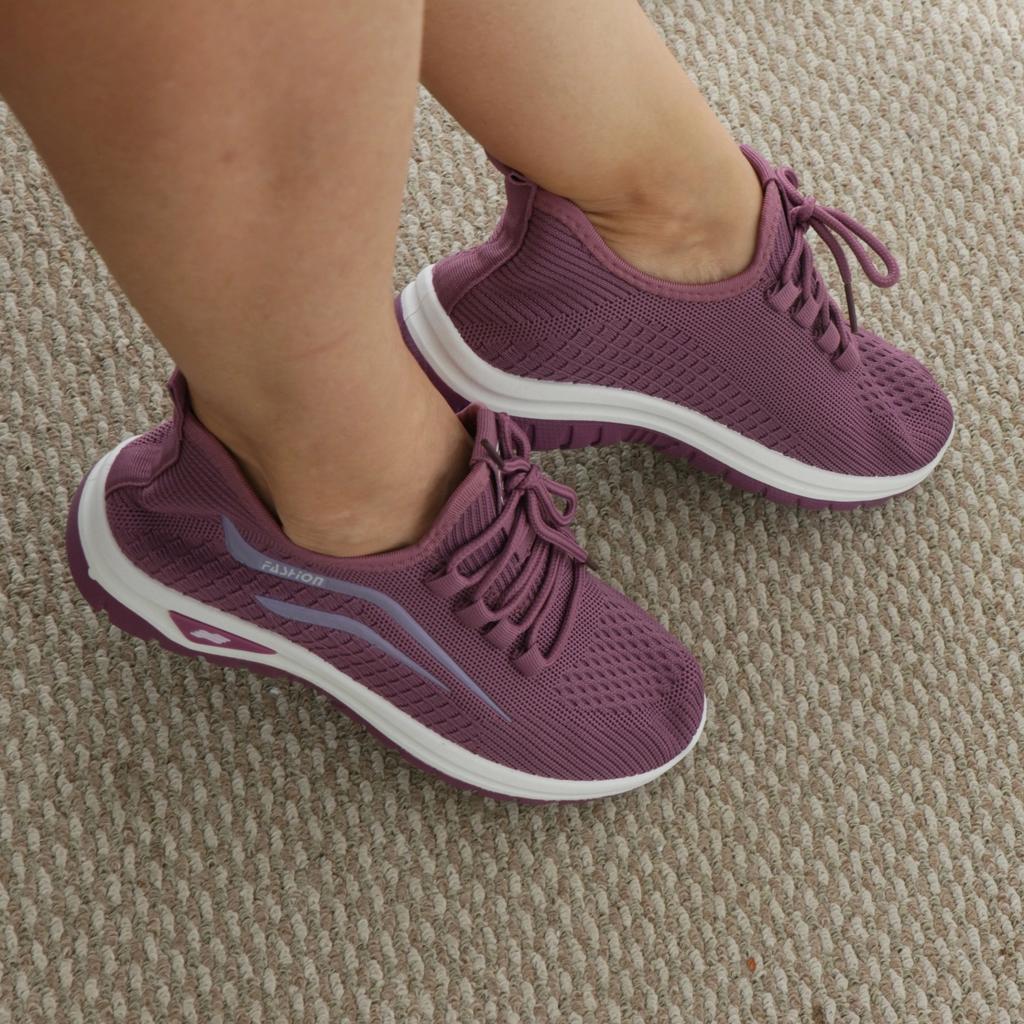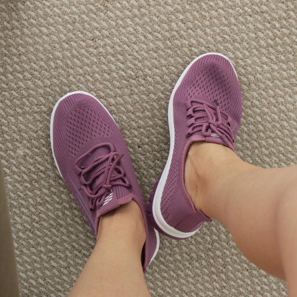 Women'S Casual Sports Outdoor Running Walking Daily Commuting Lace-Up Patterned Double-Layer Easy-On-Off Knitted Shoes