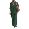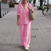 Women's Fashion Casual Summer Solid Color Lapel Long-sleeved Shirt Elastic Waist Nine-point Pants Two-piece Suit
