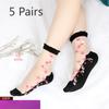 5 Pairs of Ladies Spring and Summer New Style Flowers Sexy Thin Transparent Cotton Bottom Glass Silk In The Tube Socks