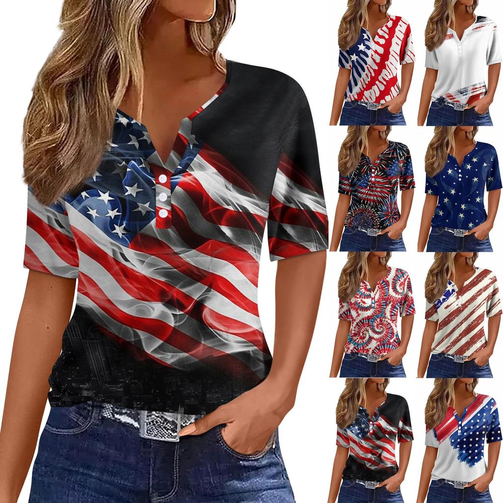 Women's T Shirt Tee Print Button Short Sleeve Daily Weekend Fashion Basic V- Neck Regular Top