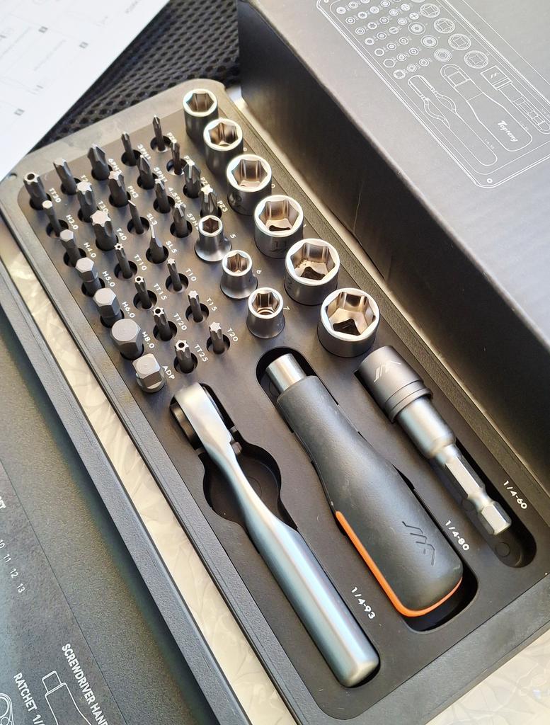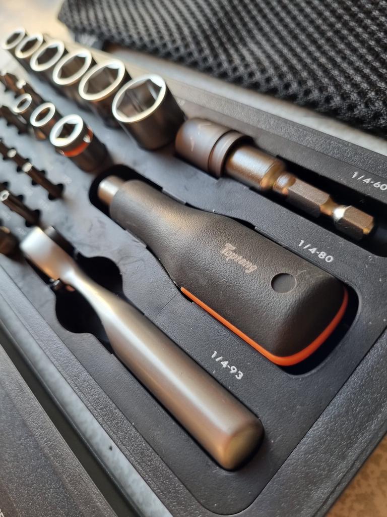 Compact, well-thought-out, really strong – My impression of the Topteng 41-piece mini ratchet set I ordered the Topteng Mini Ratchet and Screwdriver Set on Joom because I was looking for a compact but still high-quality tool set for smaller repairs and electronics work. And I must say: I am really impressed! The set in everyday life: Whether I need to quickly tighten a piece of furniture, repair an outlet, or screw on small electrical appliances – this set has proven extremely practical for me. The selection of bits and sockets is absolutely sufficient for daily needs, and everything sits neatly and ready to hand in the magnetic storage case.. Compact, but not a toy: What I particularly like: Despite the handy size, nothing here feels cheap or unstable. The ratchet sits well in the hand, has 72 teeth, and works super precisely – even a small movement angle of 5° is enough to loosen or tighten screws. Ideal when working in tight corners – whether on the office chair or inside the PC case. Practical down to the last detail: The bits are easy to recognize, firmly fixed in the holders, and can be changed with a single hand movement. The quick-release mechanism is a real time-saver when you need to switch between different attachments. I also find it particularly practical that everything is organized magnetically – nothing falls out or flies around.. Quality you can feel: The tools themselves make a very robust impression. The materials used (alloy steel, polycarbonate handle) feel high-quality and seem durable. I haven't noticed any signs of wear so far – and I use the set really often. My conclusion: The Topteng Mini Ratchet and Screwdriver Set is small, handy, and incredibly well thought out. For me as a DIYer and tech enthusiast, it's a real must-have – both for on the go and at home. Anyone who values quality, order, and functionality will not be disappointed here.