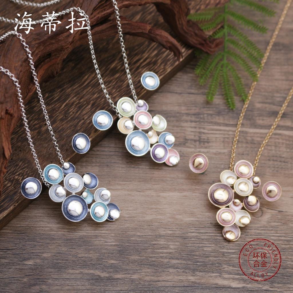 New Enamel Round Flower Stud Earrings Pendant Set, Women's High-end Glossy Enamel Necklace.