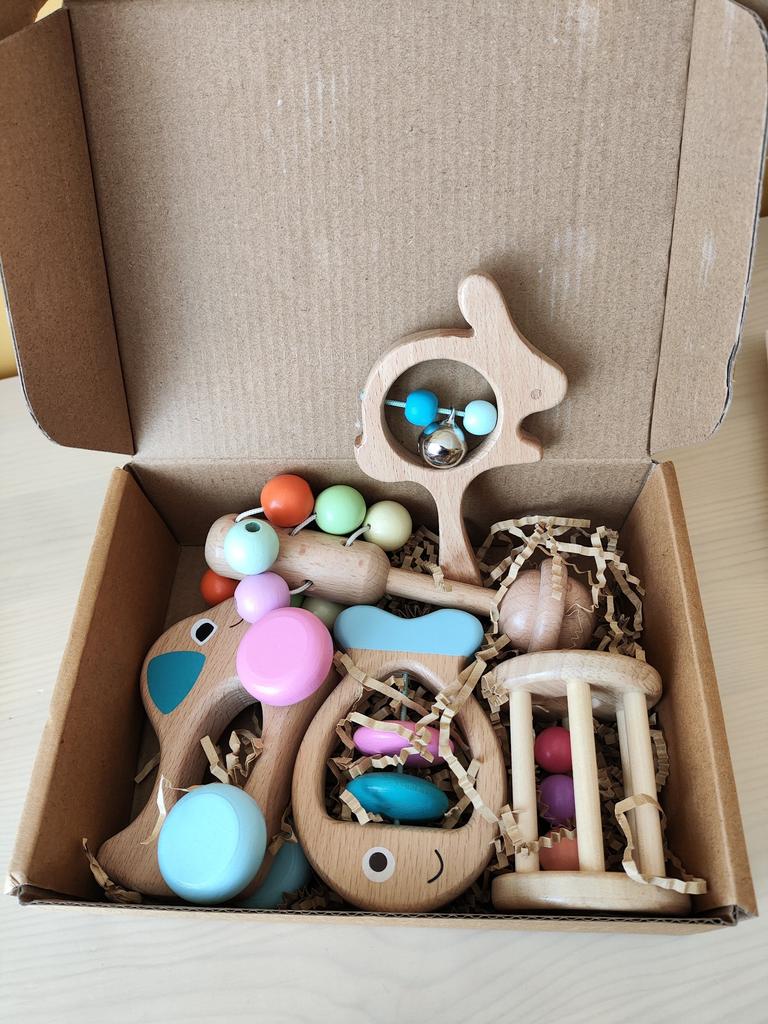 Colorful Wooden Baby Rattle Set: 5-Piece Musical Crib Mobile for Early Education and Soothing