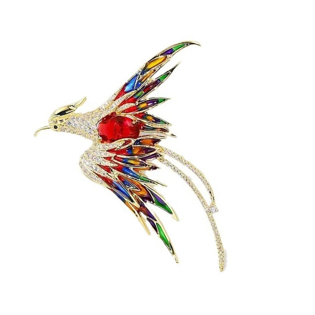 Vibrant Enamel Phoenix Lapel Pin Versatile Phoenix Crystal Brooch Pin Unisex Enamel Bird Pin Accessory for Events