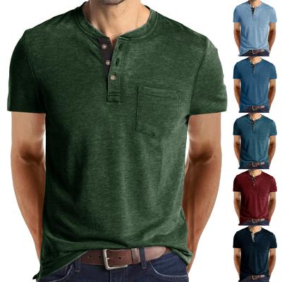 Men's Henry Collar T-shirt Short Sleeve Solid Color Buttoned Collar Tee Casual