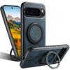 SUTENI G3 For Google Pixel 10 Pro XL Case Compatible with MagSafe Waxy Texture Rotating Kickstand Leather Phone Back Cover - Blue