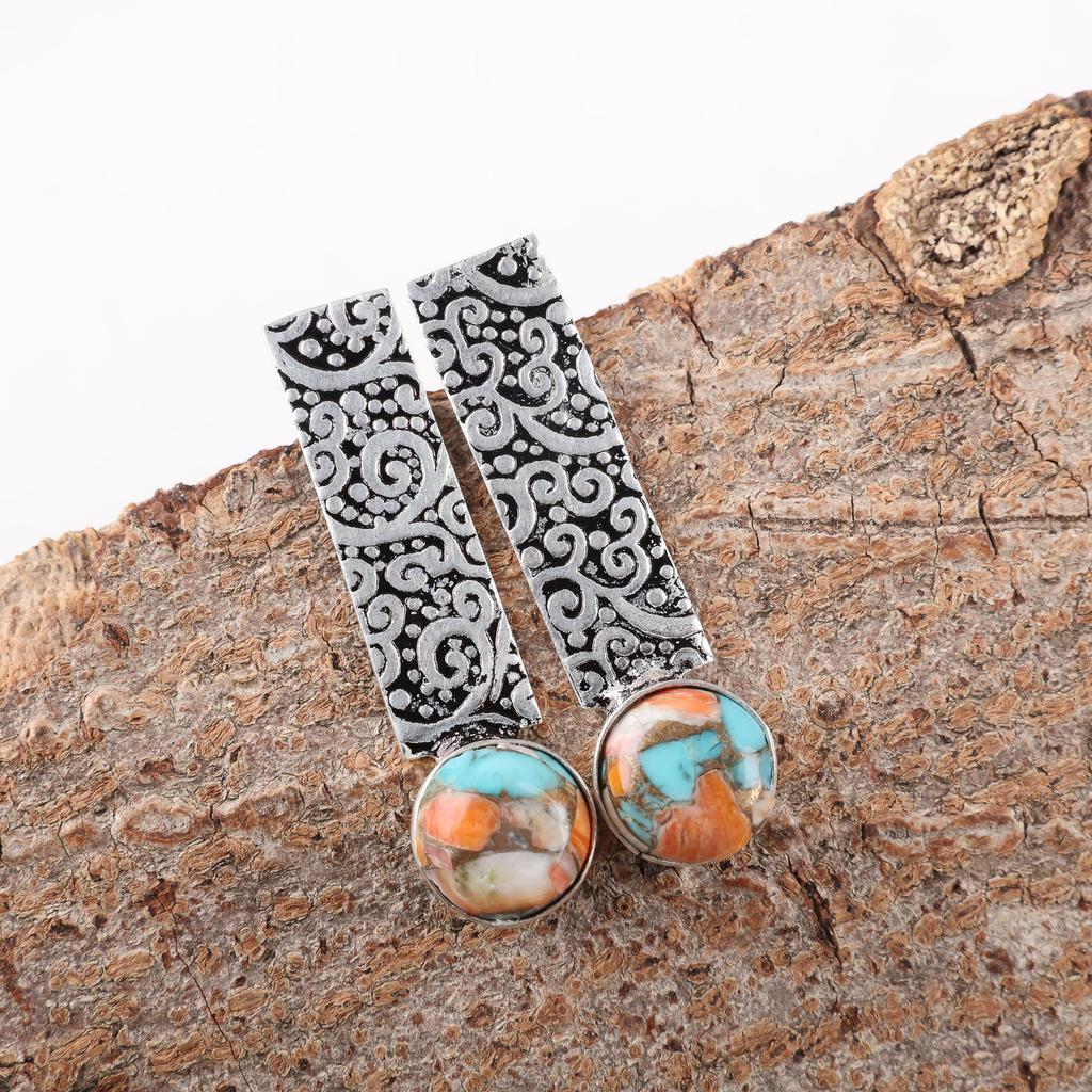 Spiny Oyster Handmade Gemstone Earrings, 925 Solid Sterling Silver Earrings Designer Jewelry, For Anniversary Gift