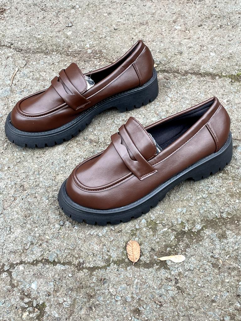 Spring Small Leather Shoes for Women Retro Thick-soled Lefu Shoes Casual and Versatile Single Shoes