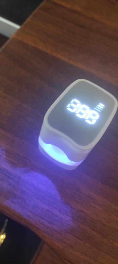 Already tried it. Battery powered. Turns on when put on the finger. Turns off by itself after 7 minutes. I'm delighted! I recommend it to everyone who has nail problems!