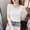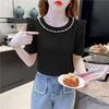 Sweet Lotus Leaf Short Sleeved T-shirt for Summer Fashion Nail Bead Round Neck Slim Fit Versatile Top Western-style Shirt