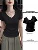 Women's Slim-Fit V-Neck Short-Sleeve Summer T-Shirt: Stylish, Versatile, and High-Quality Design