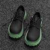 Men's Green Base Carbon Black Derby Leather Shoes, Round Toe, Thick Sole, Casual Fashion Trend - 44329-J