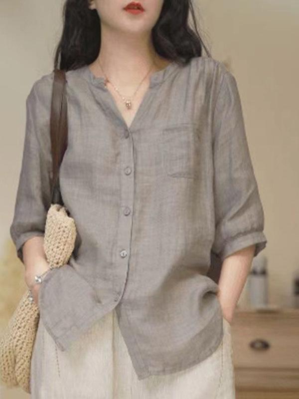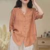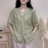 2025 Art Retro Summer Thin Cotton and Hemp Shirt Women's Loose V-neck Shirt Jacket Casual Small Shirt