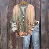 Women's Fashion Button V-Neck Ruffle Seven Sleeve Blouse Floral Printed Top