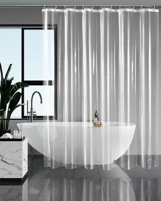 AooHome Transparent Vinyl Shower Bath Curtain for Unit Baths and Room with Long Length Curtain, Bathrooms, Divider, Clear, Lightweight, Hooks,