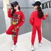 Girls' Trendy Spring Two-Piece Suit: Stylish Sweater & Print Sports Leisure Set