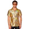 Men's Shiny Metallic Shirt Short Sleeve Lapel Shirt Button-up Sparkling Disco Outfit for Stage Performance Nightclub Dance Party Bar